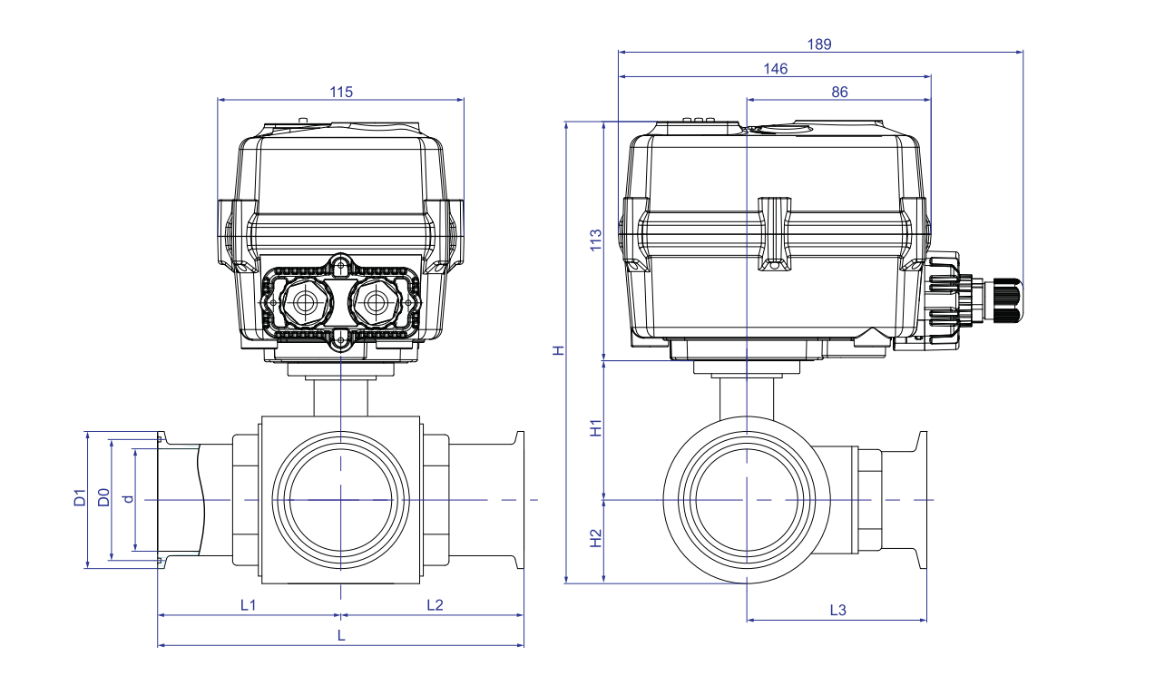 快装卧式三通电动调节球阀特色