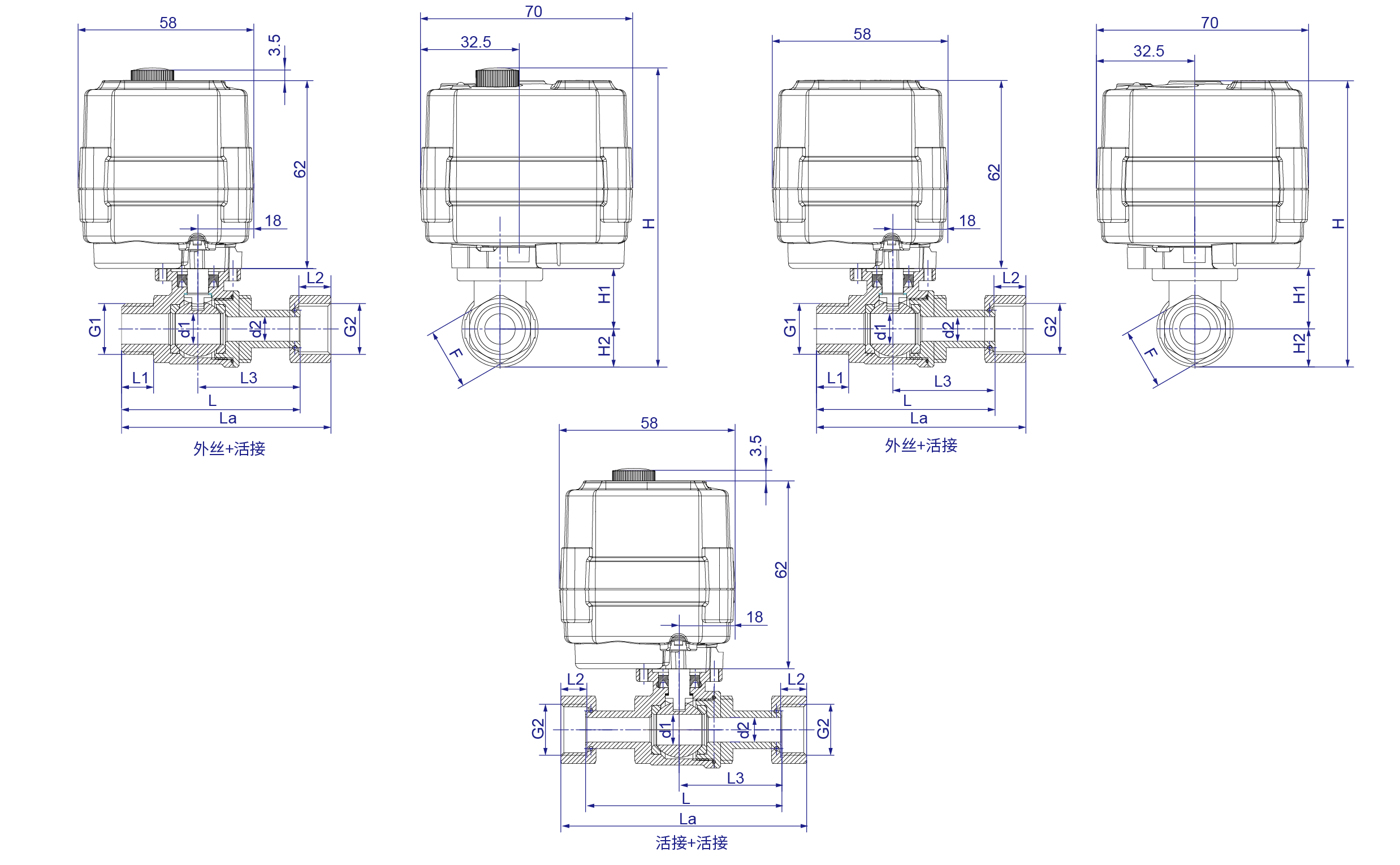 | DN15 | 外丝+活接 | G1/2" | G1/2" | 14.0 | 12 | 15.0 | 10.8 | 39.5 | 73.5 | 83.5 | 27 | 16.5 | 21.25 | 103.25 | 99.75 | - |